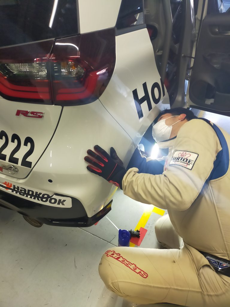 最初は遠慮か、初体験で緊張していたのか、少しぎこちない動きでそれぞれの作業をこなしていましたが、Honda Cars 東海のメカニックさんからの手厚いフォローのおかげで、レース本番までにはチームに迷惑が掛からないまでになりました。また、レースも波乱の展開でピットも大忙しとなりましたが、やりきることができました。レースのハイライト動画は巻末に掲載してます。
