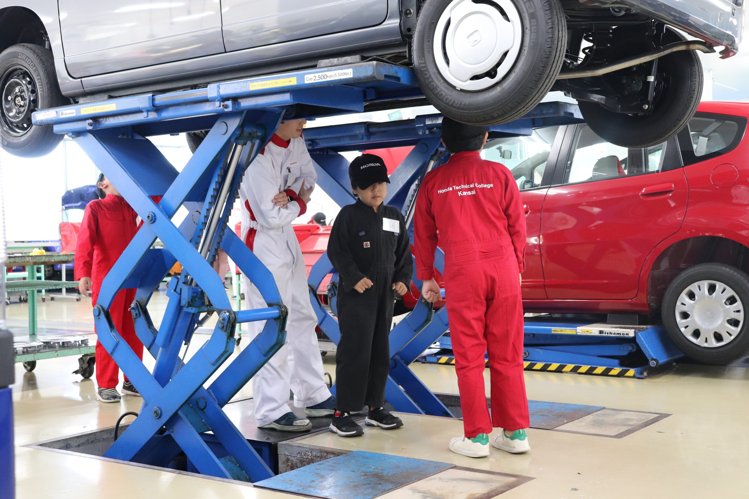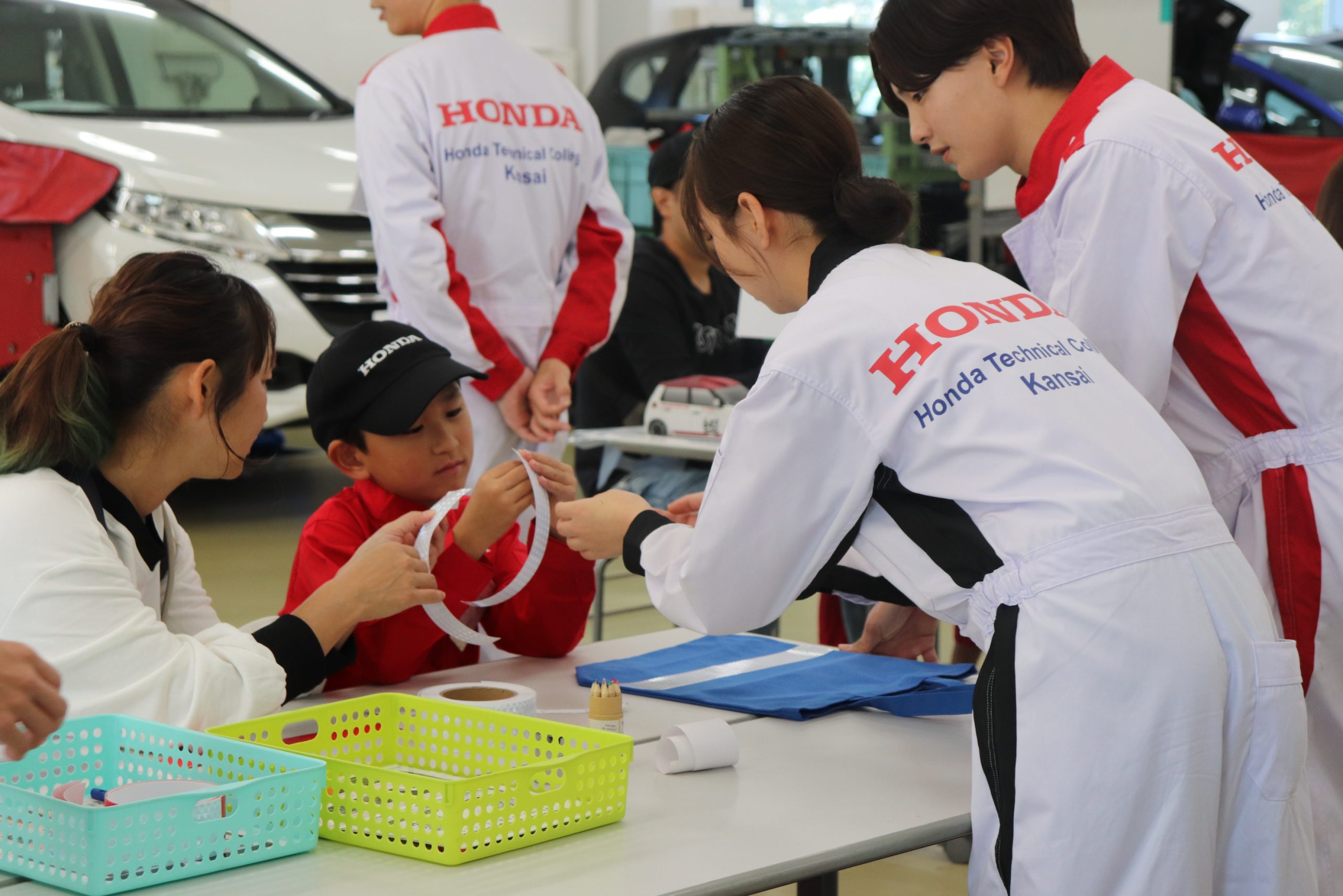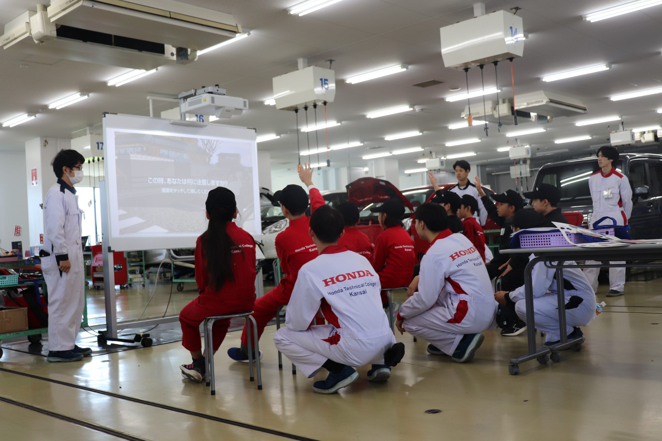 11月4日(月祝)に小学生対象の「KIDSメカニック&モノづくり教室」を実施しました。交通安全教室にオリジナルトートバッグ制作、そして、車の簡単な整備体験を学園生と一緒に取り組んでいただきました。小学生から多くの疑問や質問を学園生にしていただき、その対応をする学園生も本教室の先生役を通して成長に繋がっております。また、お子様、保護者様、学園生の笑顔もたくさん見ることができました。
