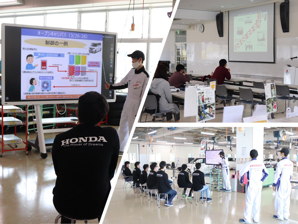 春の体験授業の一日目を無事に終えることができました。実際にクルマやバイクの整備体験、オリジナルのグラスづくりに挑戦したり、先生が制作した電動バイクを運転したり、NSXの同乗試乗やMotoGPのマシンに跨って写真を撮ってみたり、日頃体験することができない一日になったのではないでしょうか。