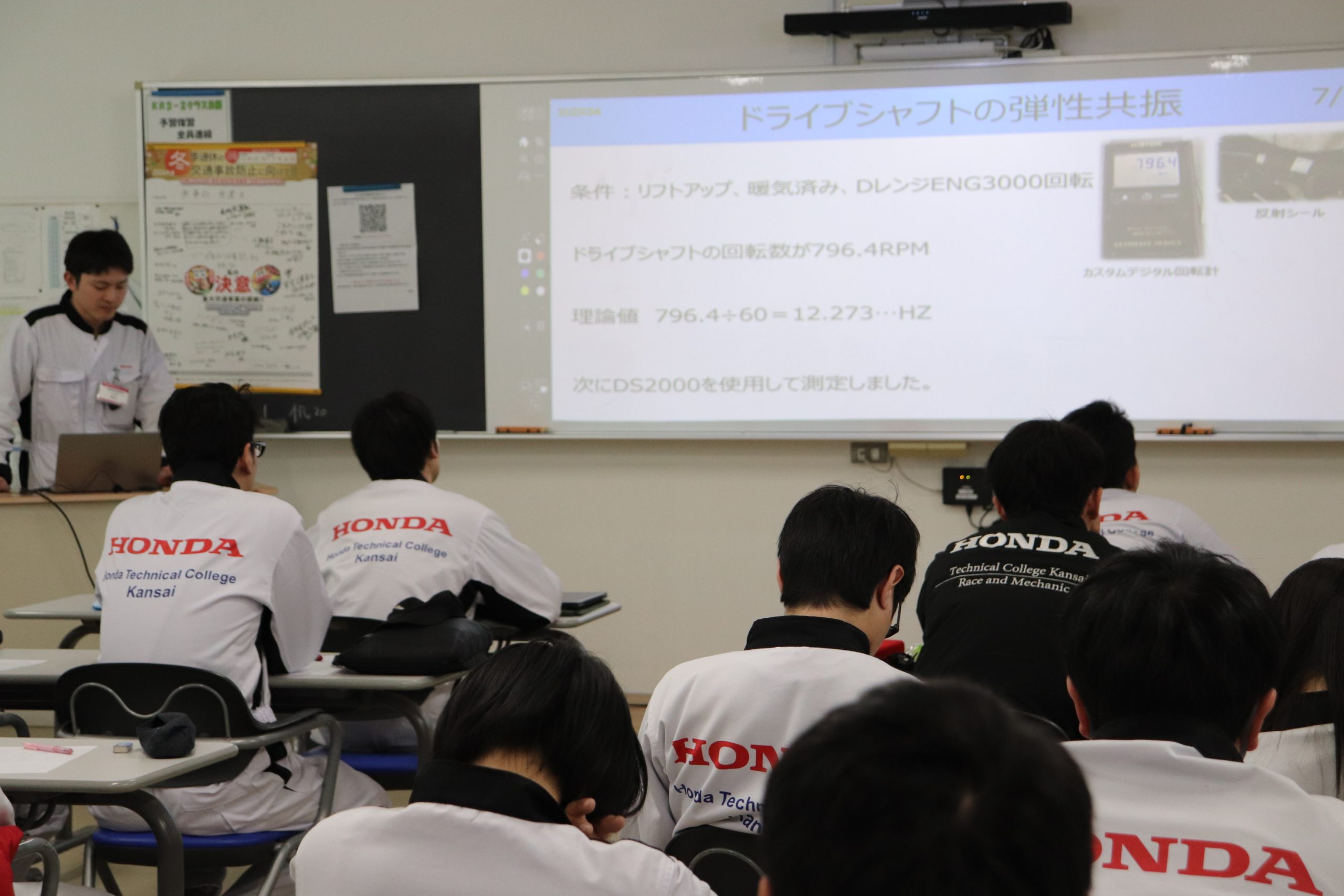 3月6日、7日および10日の3日間で、一級自動車研究開発学科 一級自動車整備士コース3年生がグループで取り組んでいた整備課題研究の発表会を行いました。発表は個々の学園生が取り組んだ整備課題を持ち時間を使って、簡潔にわかりやすく説明を行いました。発表後は、学園生・先生からの質問やコメントをもらい、改善点に気づくことができました。