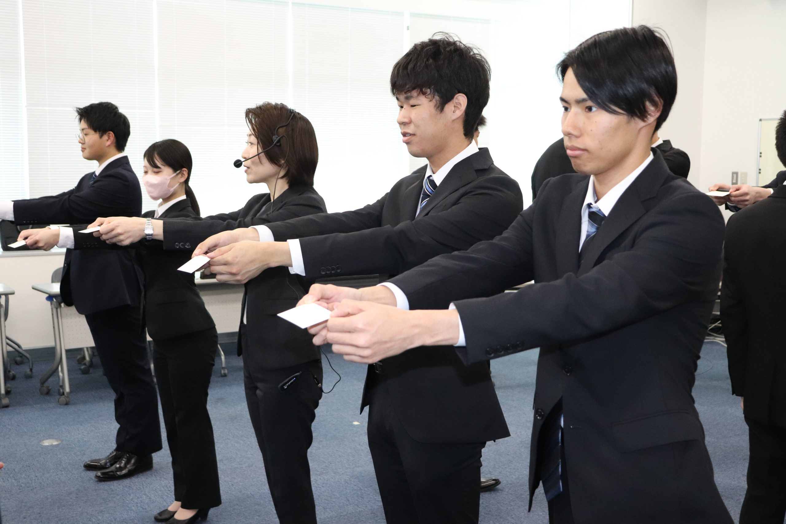 目的は、この後に実施するインターンシップに向けての事前研修です。インターンシップ先では、必ず企業様のお客様がいらっしゃいます。周りの全ての人に思いやりの心を表現し伝えること、それが接遇マナーです。学んだことをインターンシップで活かしていただきたいと思います。