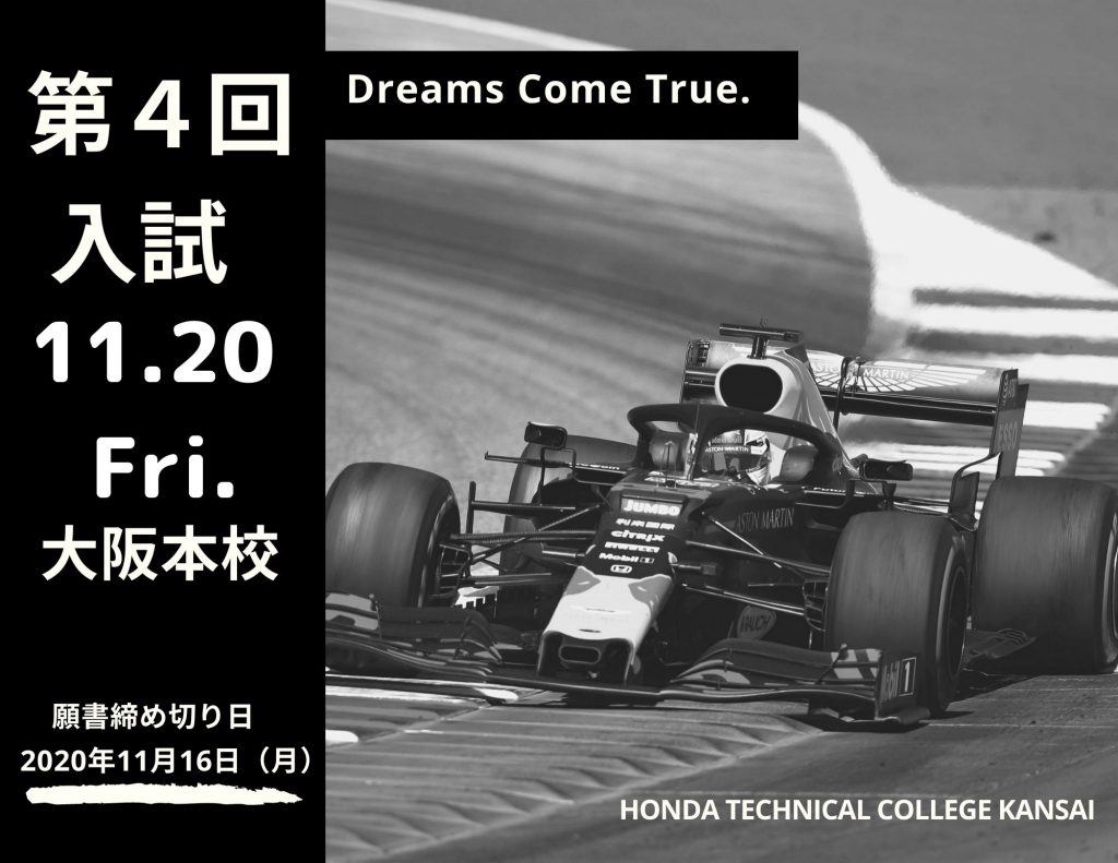 第4回入試は11月20日(金)で大阪本校が会場となります。願書締め日は11月16日(月)となります。