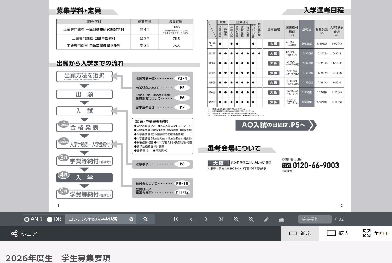 紙のカレッジガイド・募集要項と同様の内容になりますので、ぜひ、ご覧ください。また、紙でのカレッジガイド2026・募集要項2026をご希望される方は、HPの資料請求よりお申込みください。約1週間でお届けいたします。