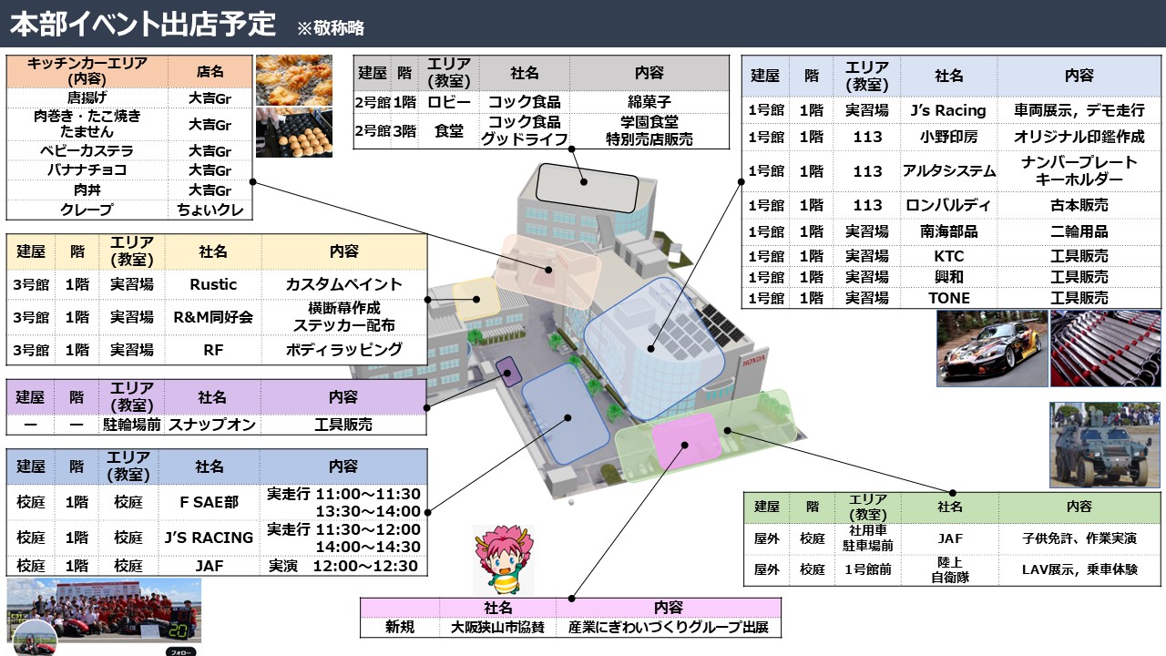 学園生、教職員が一緒になって、地域の皆様・小さなお子様にも楽しんでもらえるイベント内容にしました。当日は、レーシングマシンの展示・エンジン始動やキッチンカーも多数出展しますので、グルメも楽しめます。お友達、ご家族お誘いの上、ぜひ、ご来校ください。
