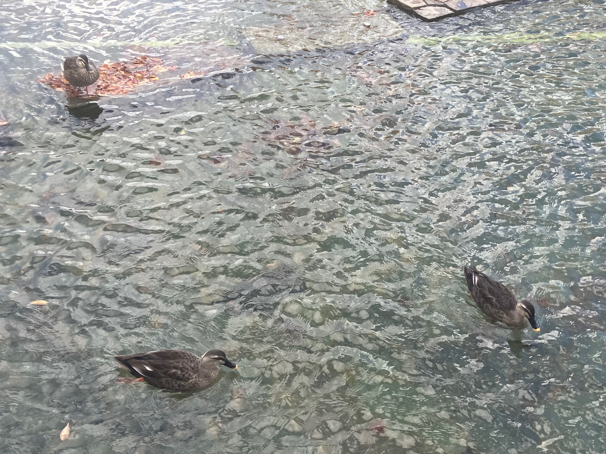 ■小川には鴨や雀が一休み