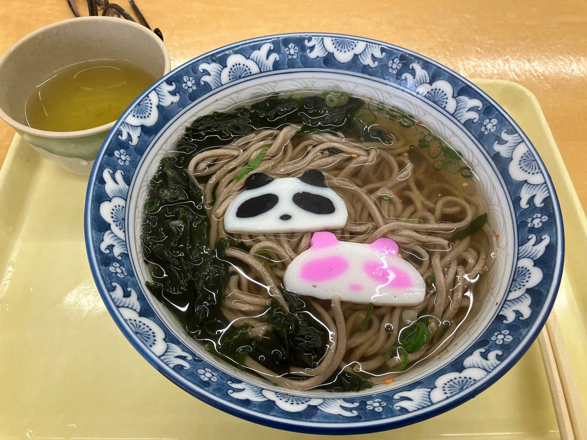 ※パンダの顔の蒲鉾がはいった、お蕎麦、おいしくいただきました。