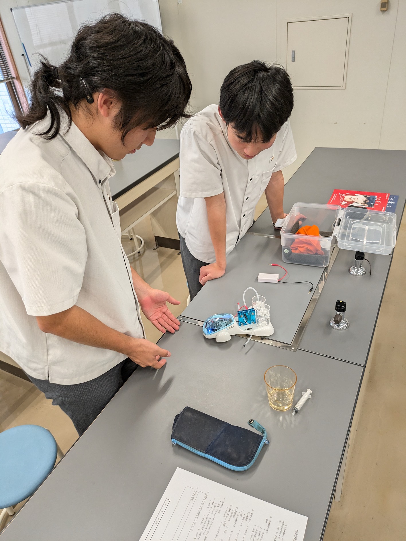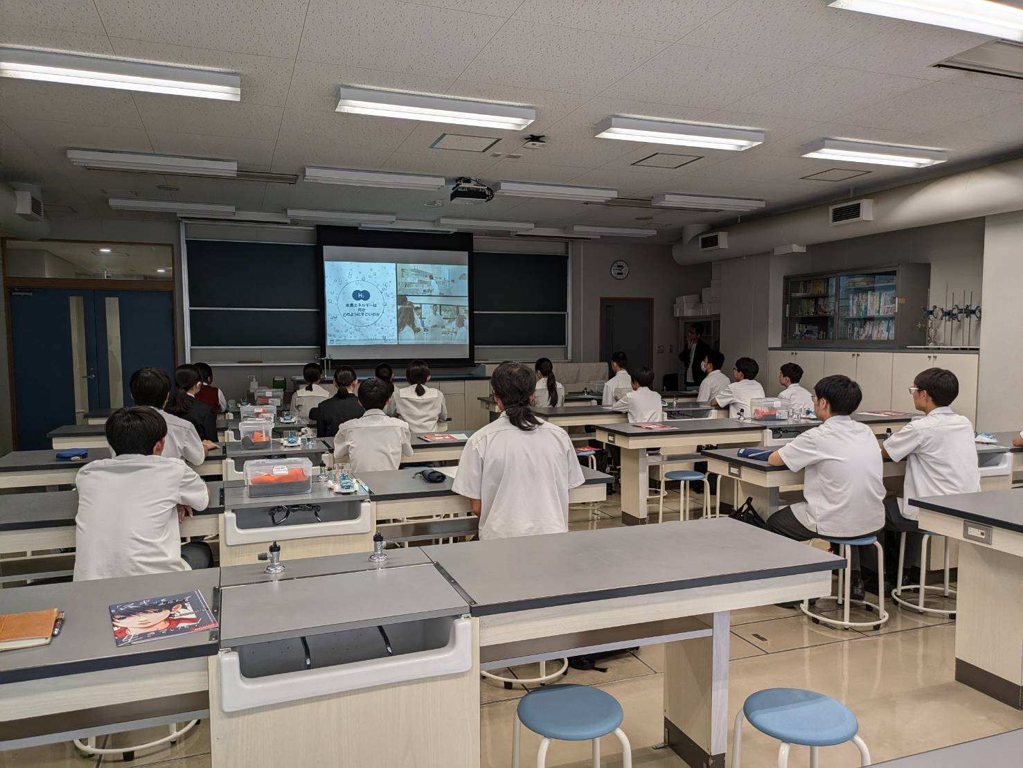 中間テスト終了後で生徒の自主的な参加による授業開催でしたが、生徒の皆さんは最後まで集中して実験に取り組んでくれ、また、授業後もたくさんの質問をしてくれてありがとうございました。高校生活でいろいろなものに興味関心を持っていただき、ぜひ、探究という行動に繋げてください。