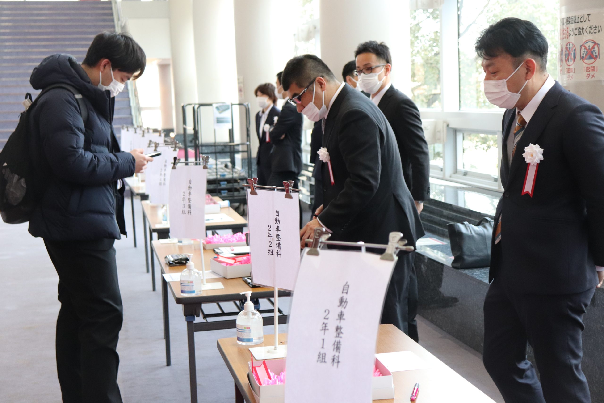 【卒業式】2022年度の卒業式を執り行いました 2023.03.08 3月8日(水)に大阪狭山市のSAYAKAホールにて、2022年度の卒業式を執り行いました。今年度の卒業生は、自動車整備科94名、自動車整備留学生科48名、一級自動車研究開発学科26名、合計168名。卒業式では、サプライズとして祝電披露の際に「MOTO GPライダーのマルク・マルケス選手・中上 貴晶選手」「F1ドライバーの角田 裕毅選手」からビデオレターを放映し、卒業生・参列者、また、Youtubeで視聴していたご家族の皆様ともにびっくりしたのではないでしょうか。 本当に、ご卒業おめでとうございます。