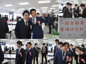 卒業式は卒業生と教職員で執り行い、卒業生135名(自動車整備科:89名、自動車研究開発科16名、一級自動車整備研究科30名)を送り出すことができました。