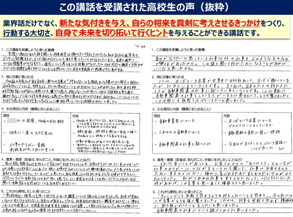 1.高校1年生向け:Honda社員が語る進路探究授業「仕事をキーワードに。未来から逆算する進路選択の提案」