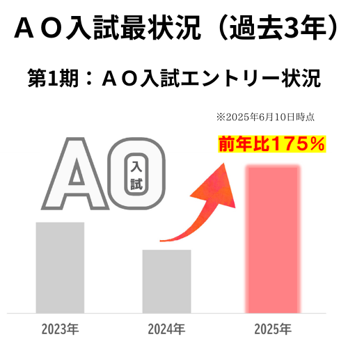 第1期のAO入試(6月14日面談分)には、なんと、前年比175%と多くのエントリーをいただきました。?