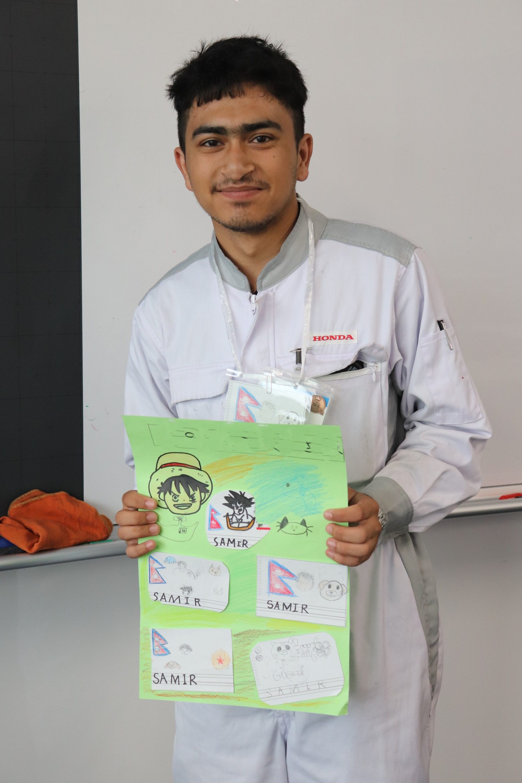可愛い手作り名札をプレゼントしてもらった留学生17名は、先日、第7小学校で実施した英語の交流授業に参加させていただいた学園生です。