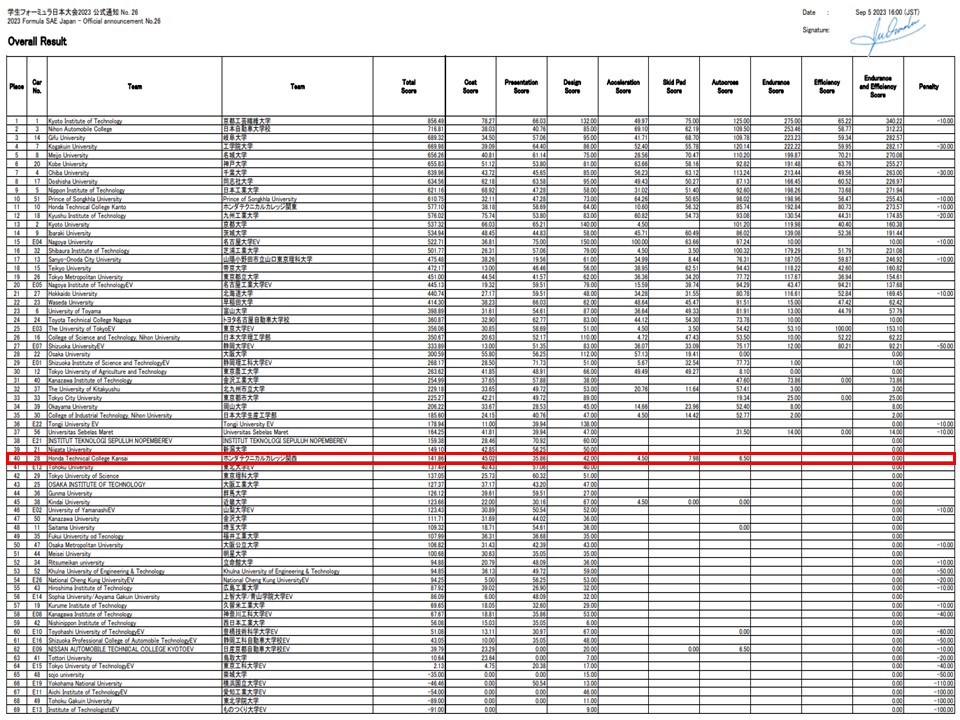 8月21日~25日のONLINEでの静的審査後、8月28日~9月2日に静岡県のエコパで開催された『学生フォーミュラ※日本大会2023』にF-SAE同好会が出場しました。大会の模様を掲載します。迫力のある絵が撮れてます(#^^#)