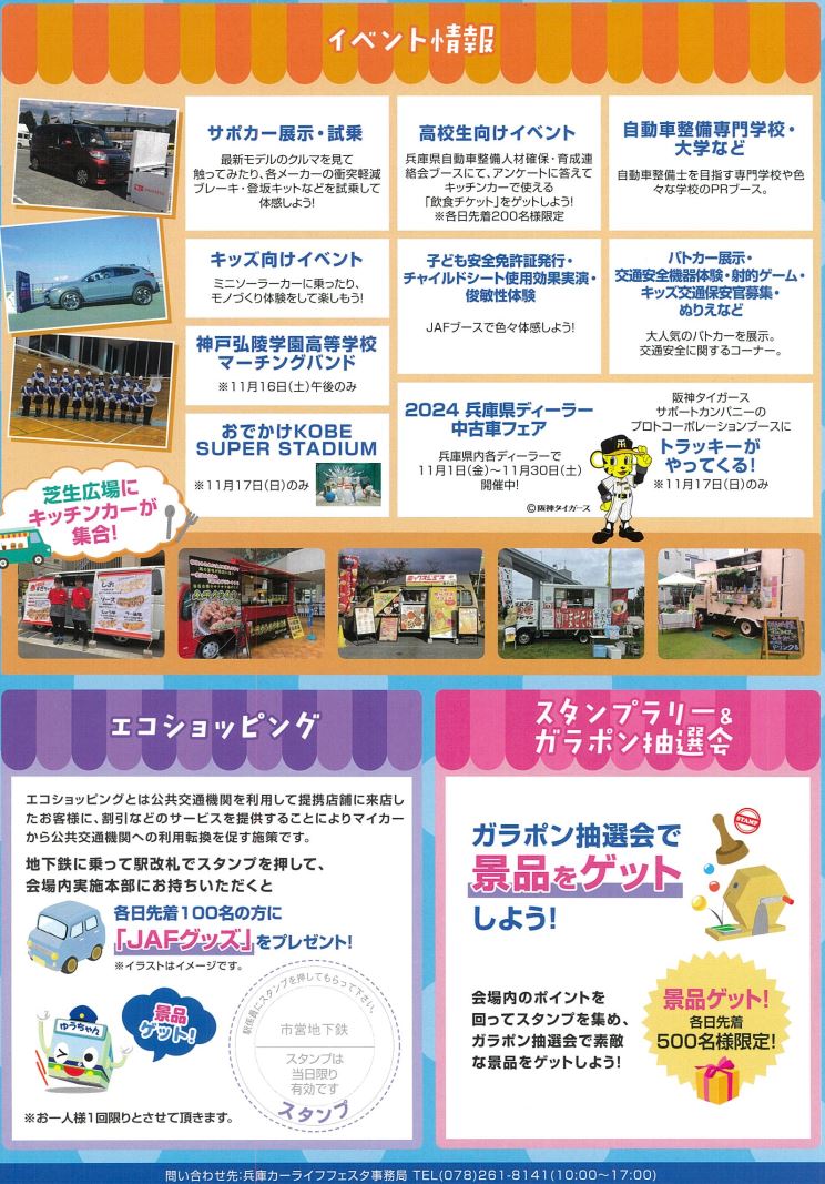 【告知①】兵庫カーフェスタに出展!!(11月16日・17日) 2024.11.08 11月16日(土)、17日(日)に兵庫のメリケンパークで行われる「兵庫カーライフフェスタ2024」にホンダ学園ブースを今年も出展します。ブースでは、HTEC R&M部のN-ONEレースマシンの展示とお子様向けのクラフト制作(N-ONEレースマシンのティッシュBOX)を実施します。また、お隣のブースには、「ホンダモビリティ近畿」さんが出展し、KIDSメカニックも実施します。お近くにお越しの際は、ぜひ、お立ち寄りください。
