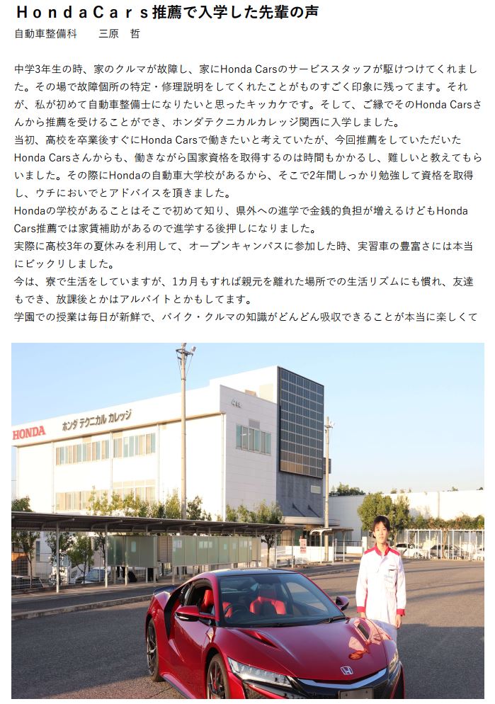 Honda Cars/Honda Dream推薦入試については、こちらから