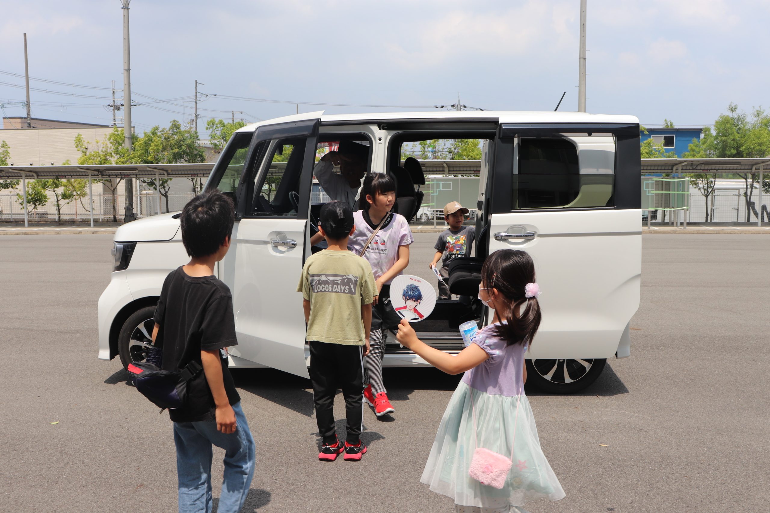 当日は、SDGsの復習から始まり、自動車の仕組みを学び、エンジンで動くクルマと電気の力で動くクルマの違いを見て、乗って体験する内容で最後にメッセージをお伝えさせて頂きました。暑い中でしたが最後まで一所懸命、親子で学ぶ姿勢が素晴らしかったです!