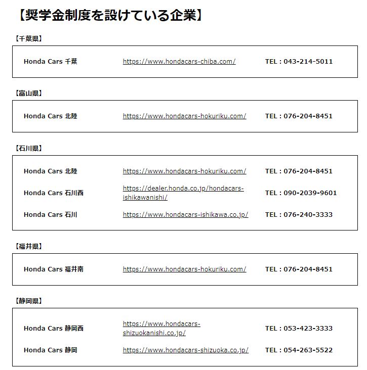 ■ホンダ学園企業奨学金の特別サイト(HondaCars推薦制度の内容も網羅)