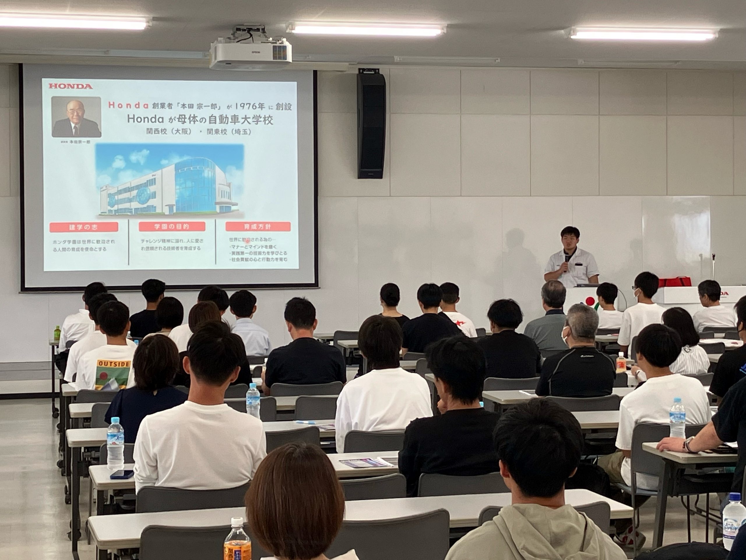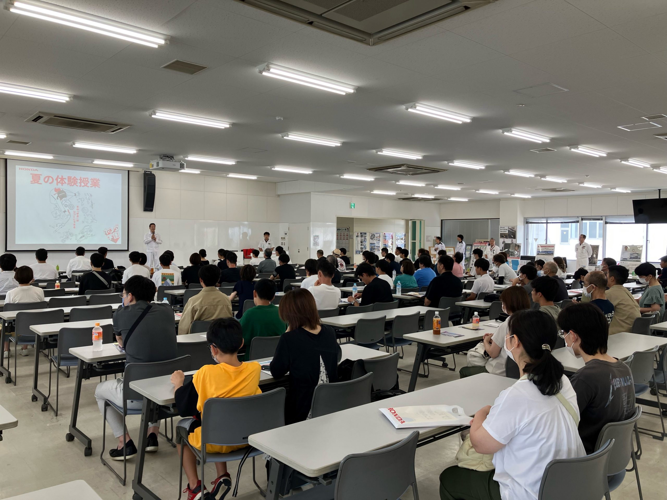 【御礼:夏の体験授業】多くの中・高校生と保護者様のご来校ありがとうございまいた 2023.08.01 7月28日(金)、29日(土)と二日間開催しました「夏の体験授業2023」に多くの高校生・保護者様の方がご参加いただきました。 猛暑の中でも外に展示していたNSXやS2000といったスポーツカーへの人気ぶりは凄かったです。また、在校生も加わりバイク・クルマの整備に開発の体験も実施していただきました。 次回の体験授業は2024年の3月29日(金)、30日(土)の開催となります。次回も目玉車の展示を予定してます。多くの方のご参加、お待ちしております。