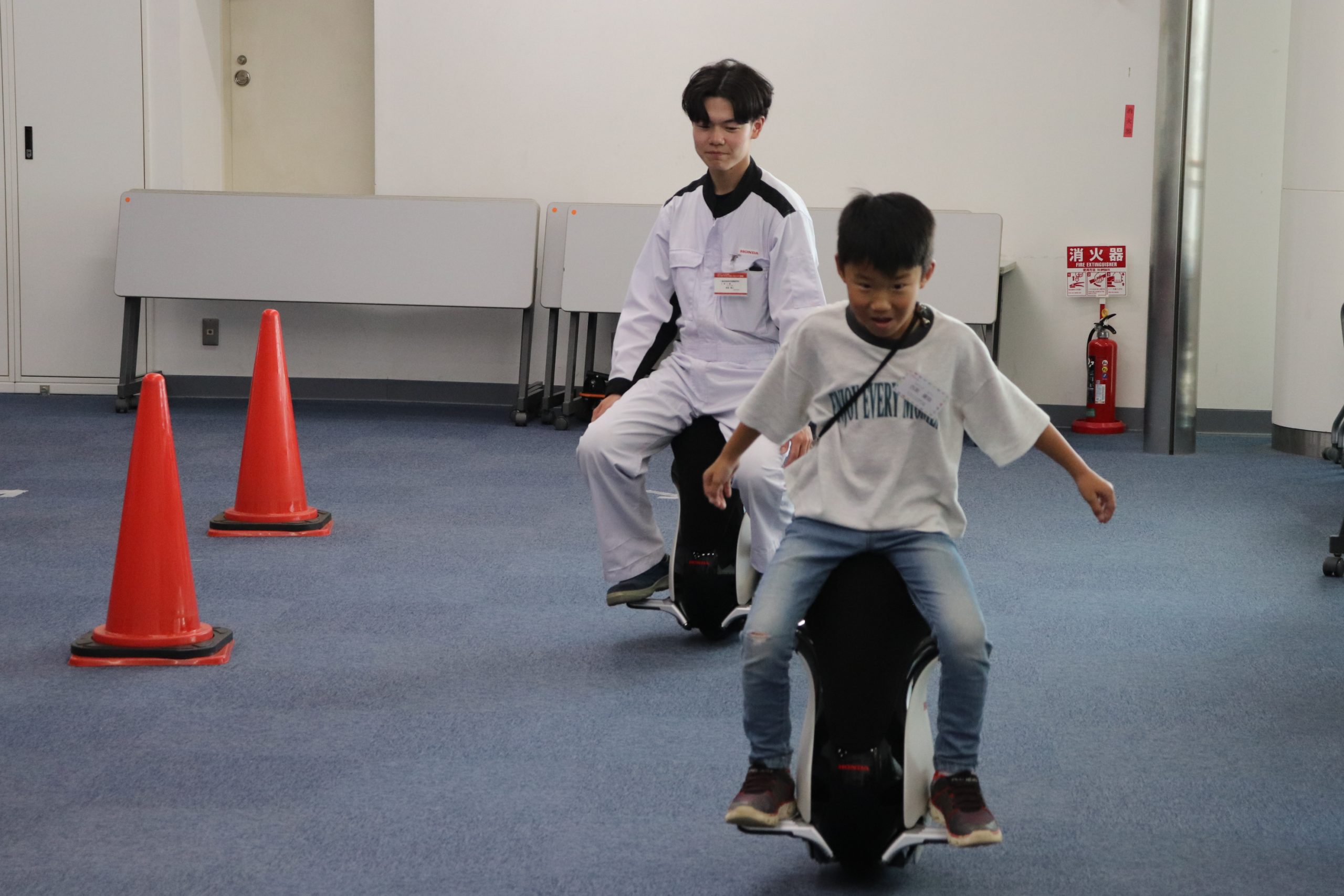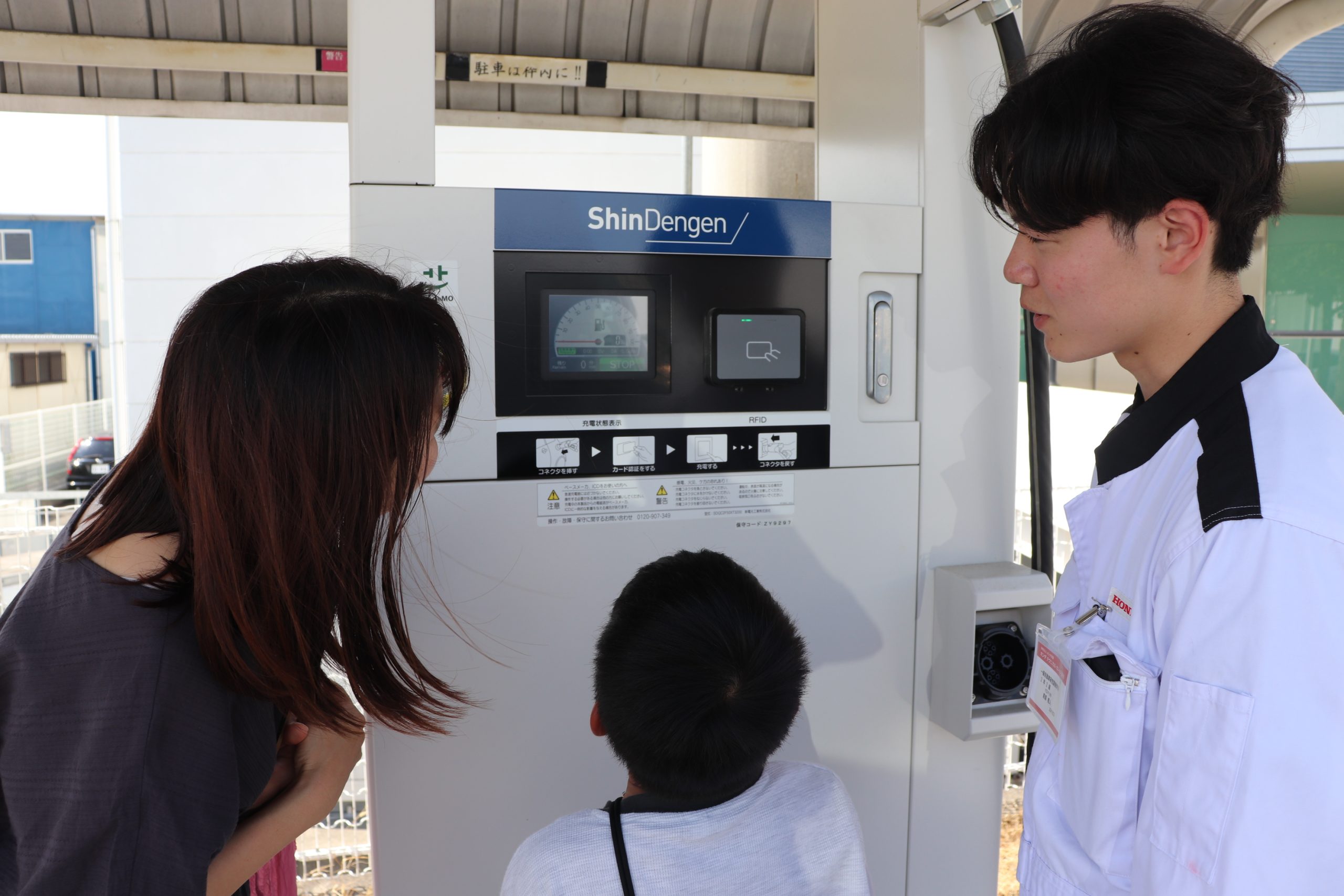 非常に熱い中でしたが、日ごろしたことない、電気自動車の充電体験や試乗でのガソリン車との違い、また、電気の力で動く乗り物「UNI‐CUB」にも乗っていただきました。