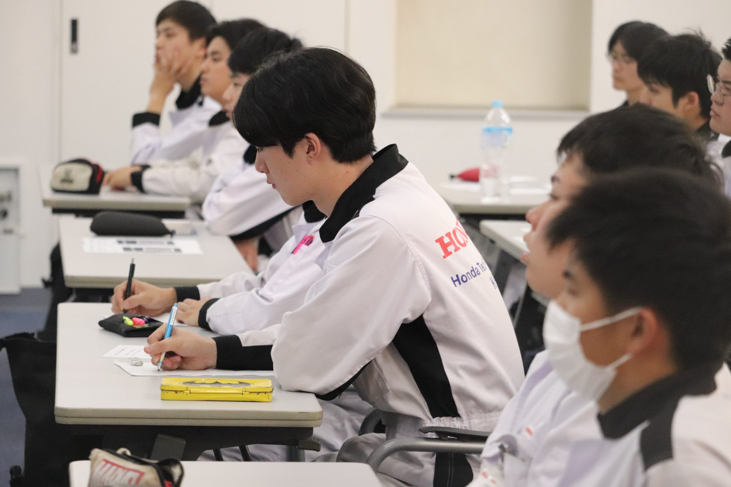 【貴重な講話!】リチウムイオンバッテリーとその製造方法の研究開発について 2023.11.11 10月30日(月)の放課後に本田技研工業株式会社と株式会社 GSユアサの合弁新会社「株式会社Honda・GS Yuasa EV Battery R&D」の代表取締役 社長 山本 康一様をお招きして、急速に拡大するバッテリー需要に対応するため、グローバルレベルで高い競争力を持つリチウムイオンバッテリーとその製造方法の研究開発についてお話をしていただきました。 放課後にもかかわらず、電動化のキーとなる「リチウムイオンバッテリー」のお話を直接聞けるとあり、多くの学園生が聴講してました。ものすごい、メモの量でした。(#^^#)