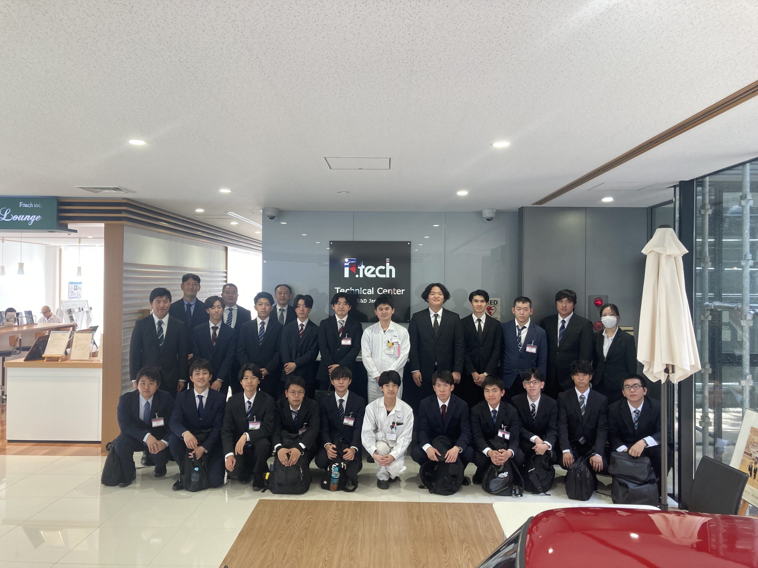 「株式会社エフテック」では、ホンダ学園卒業生2名とディスカッションと施設見学および各カテゴリに分かれて、担当者様から業務説明を受けました。特に仕事に対する熱い想いや情熱は学園生が刺激を受けたものになりました。