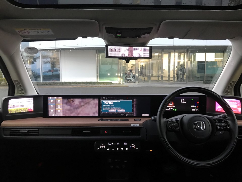 春の体験授業の特別展示車としてHondaの電気自動車「Honda e」を展示します。少し早く、Honda eを借りてきて運転をしてみました。電気自動車ならではですが、エンジン音がしないので車内が静かで、また、アクセルを踏んだ時の加速の良さが非常に素晴らしいクルマです。また、サイドミラーがなく、小さいサイドミラーみたいなものは、カメラになってます。カメラの映像は室内に常時映され、運転中の視線移動も少なくとても運転がしやすくなってます。