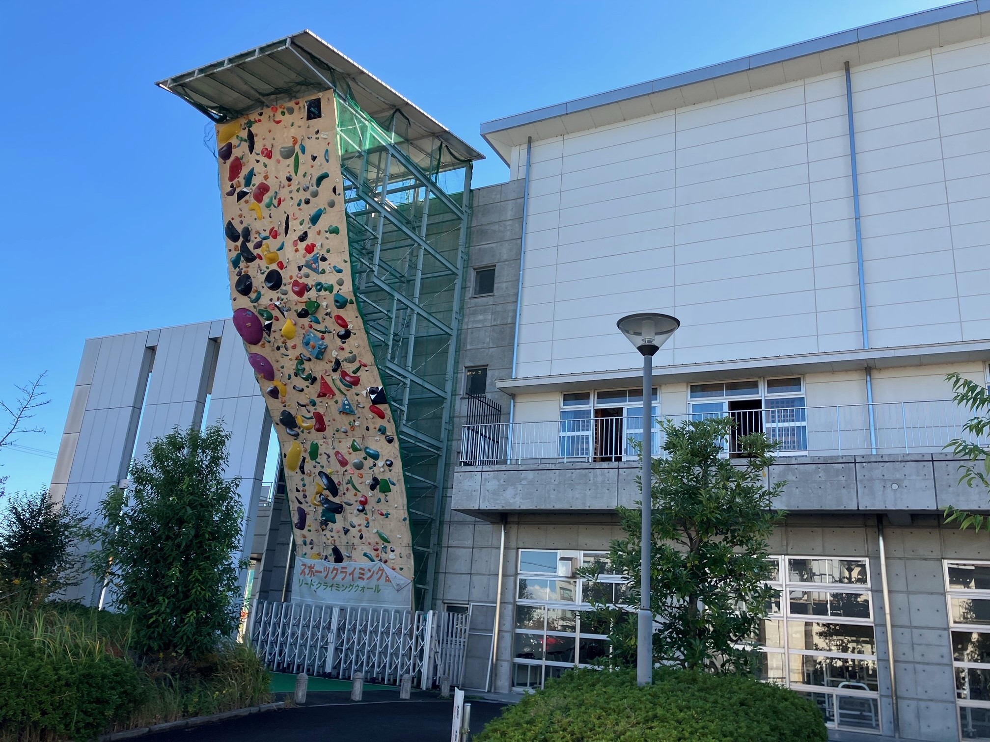 余談ですが、体育館にボルダリングコースが設置されてました。Σ(・□・;)。高校生であの絶壁を登れる生徒がきっといるんでしょうね!