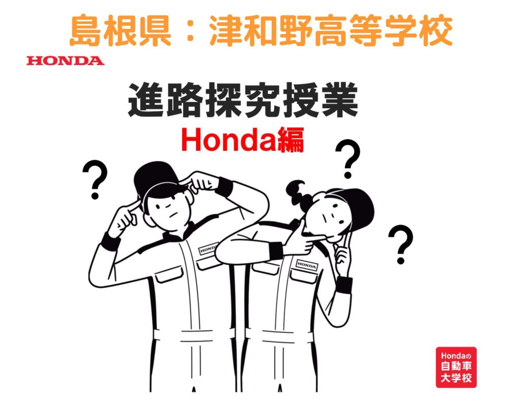 9月20日(火)の午後に、島根県のHonda Cars石見様と共同で、島根県立津和野高校の生徒様に職業勉強・体験授業を実施させて頂きました。本校は、午後の最初の授業を担当し、ONLINEで「Honda社員が語る仕事をキーワードにした進路探究授業」を実施しました。ONLINE授業でも生徒さんはしっかりメモをとり、熱心に聞いてくれていました。ONLINE授業終了後は、Honda Cars石見様にバトンタッチし、クルマの整備体験等の職業体験に移りました。