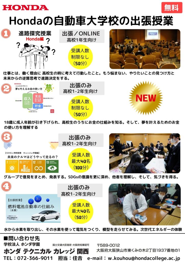■Hondaの自動車大学校が実施している4つの出張授業