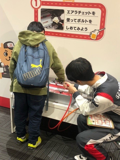 12月14日(土)、15日(日)に愛媛県松山市のアイテム愛媛で【Enjoy Honda 愛媛】が開催されました。当日は、『KIDSメカニック』ブースで学園生6名がHondaCarsユニフォームに着替えて、お子様のメカニック体験をサポートさせていただきました。イベント会場では、多くのお客様と接することができ、学園生にとっても非常に成長する機会になっております。