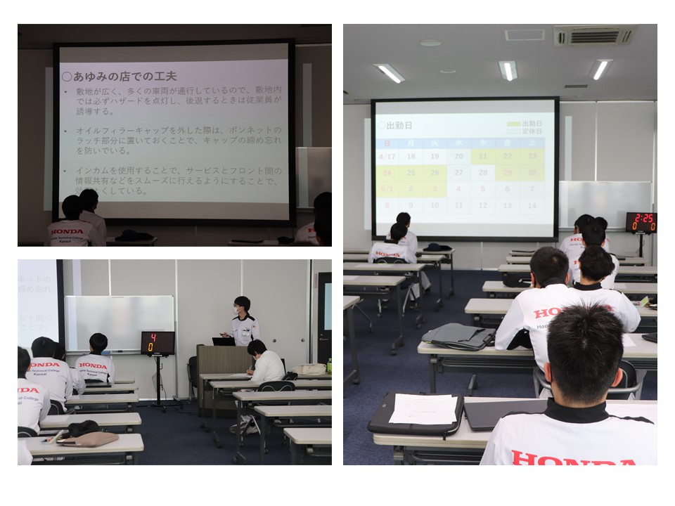 一級自動車研究開発学科の一級自動車整備士コース4年生の前期インターンシップ報告会を5月17日・18日の2日間で行いました。