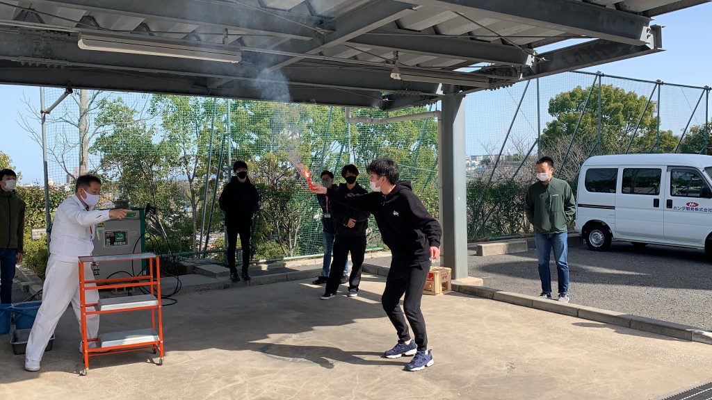 発炎前に濡らさなければ、雨の日でも着火ができます。最近はLED式の発光灯も発売されています。お客様への正しい使い方と製品説明ができるようになった実習となりました。