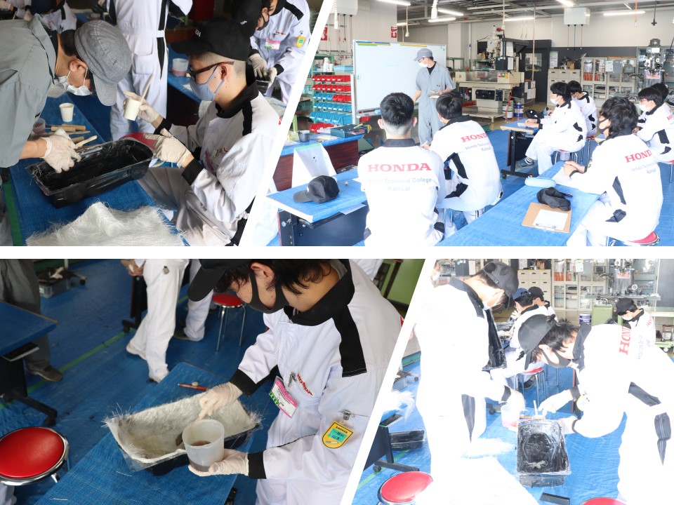 7月13日~15日の3日間、外部講師をお招きして、【自動車研究開発学科 自動車研究開発コース】3年生を対象とした「FRP講習」の授業を実施致しました。