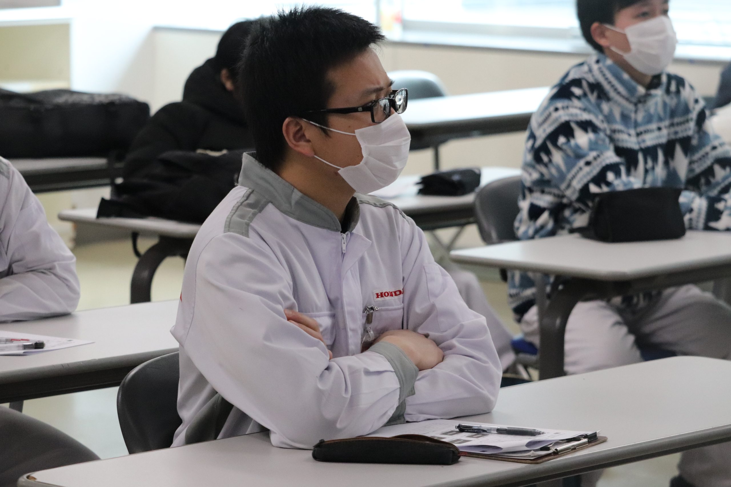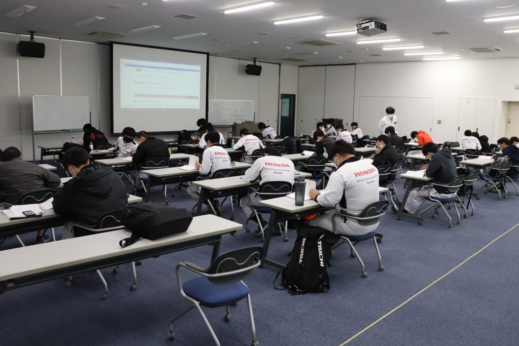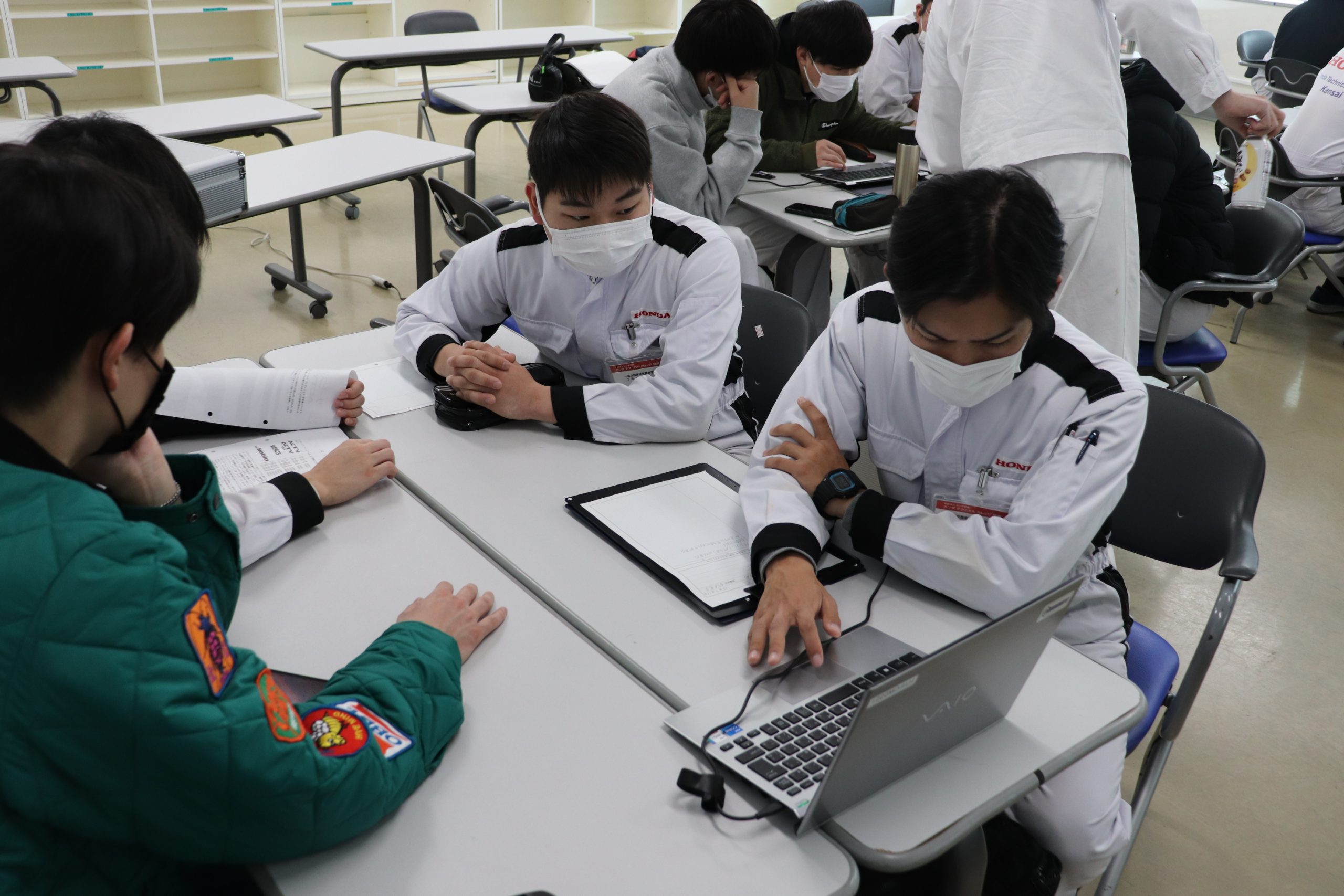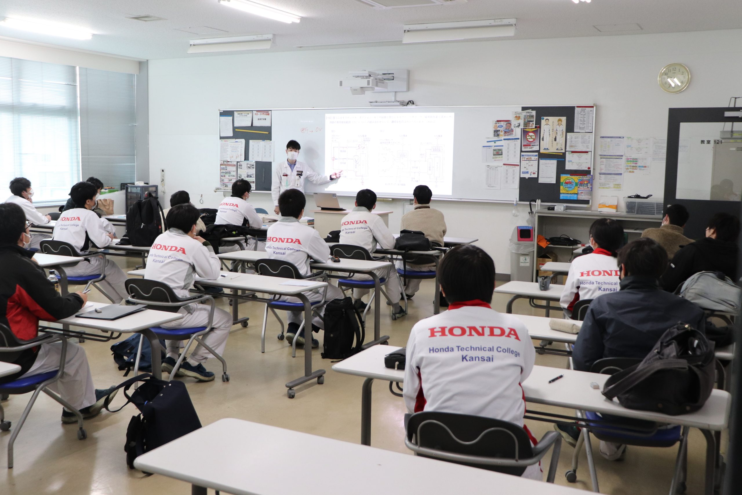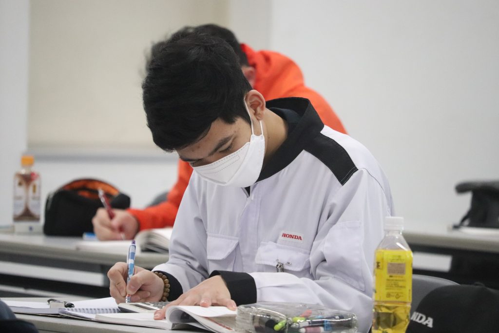 【授業風景】進路別コース授業! 2023.02.21 2月13日より学園生は進路別コース授業に入りました。それぞれの進路や就職先に合わせたホンダテクニカルカレッジ関西のオリジナル授業です。各教室・実習場では様々な授業が行われております。授業を見た職員も興味津々です。 もうすぐ卒業、そして、4月から社会へ羽ばたいてく学園生もいます。多くの学生が、自動車業界で活躍してくれることを願ってます。