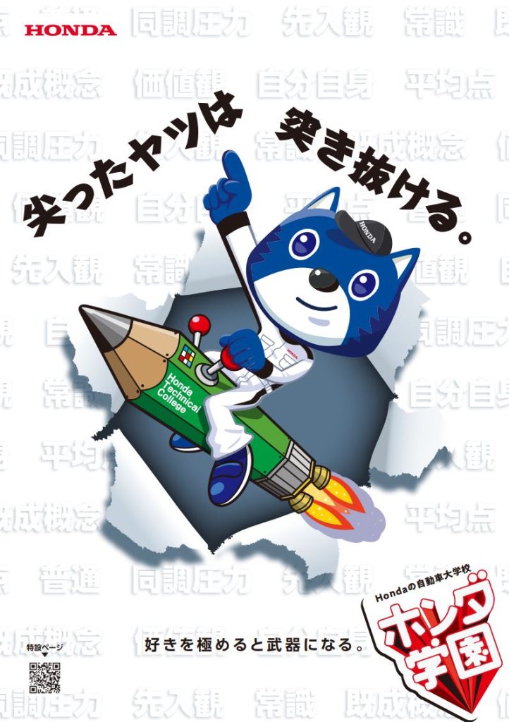 2023年のホンダテクニカルカレッジ関西のプロモーション用ポスター第1弾として、マスコットキャラクターを新規制作し、マスメディアで訴求していきます。