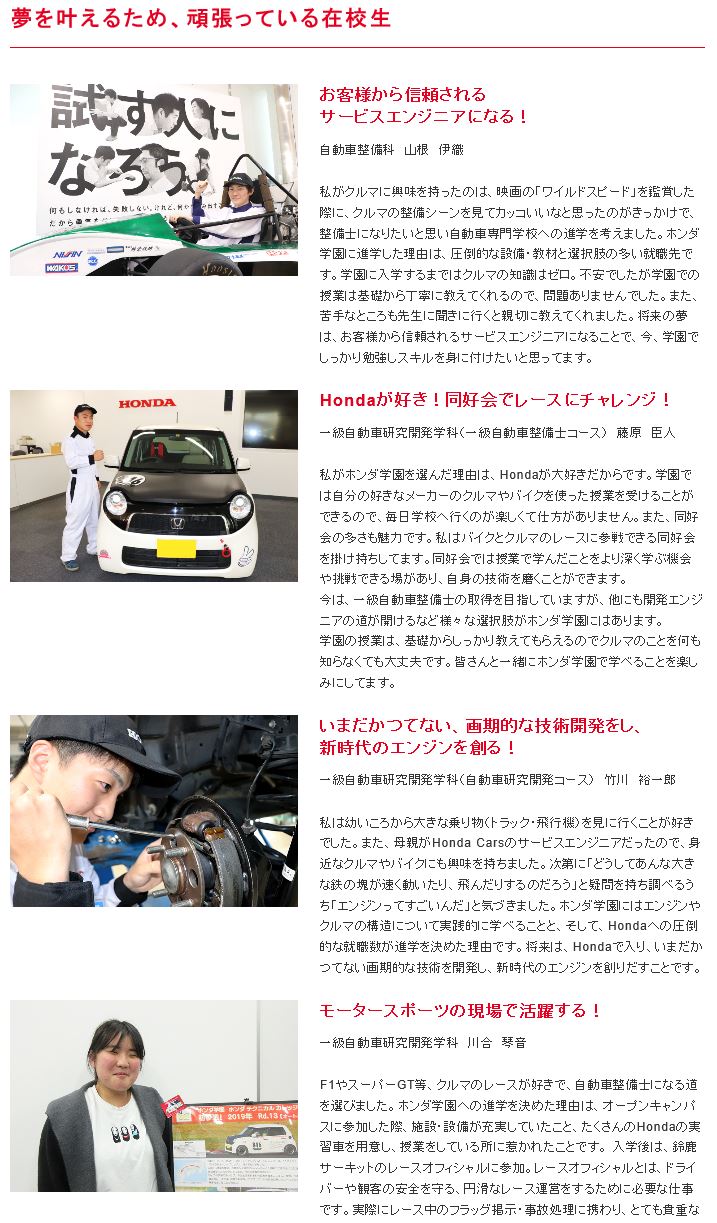 夢 叶える 学校。ホンダテクニカルカレッジ関西でその夢を追いかけてみませんか。