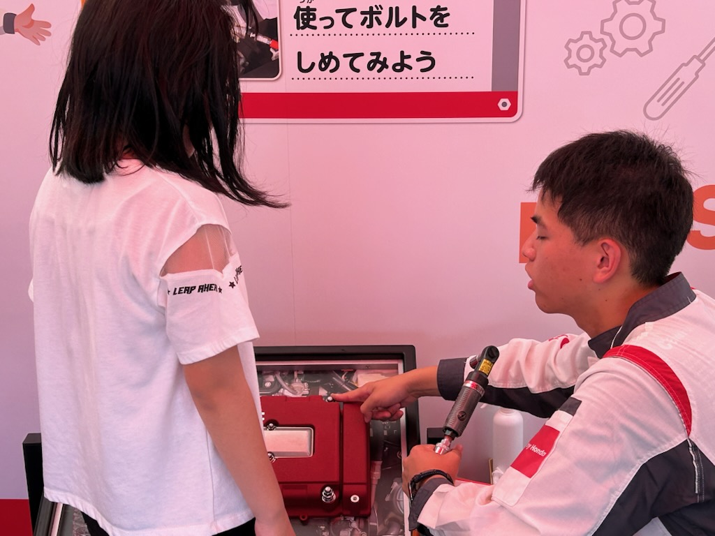 日頃はホンダ学園でバイクやクルマについて学んでいる学生が、Enjoy Hondaでは教える立場になれる貴重な機会です。また、Hondaユーザーの方や一般の方、保護者様と多くの方と交流することもできました。次回は11月に鈴鹿サーキットで行われる【Enjoy Honda 鈴鹿】でも、「KIDSメカニック」のブースサポ―トをさせていただきます。お近くの方は、ぜひ、遊びに来てください。