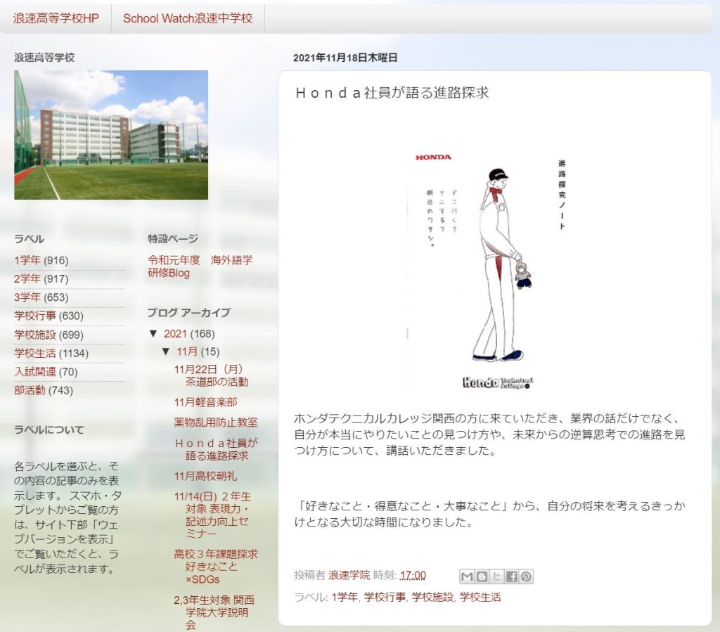 School Watch 浪速高等学校: Honda社員が語る進路探求 (naniwahighschool.blogspot.com)