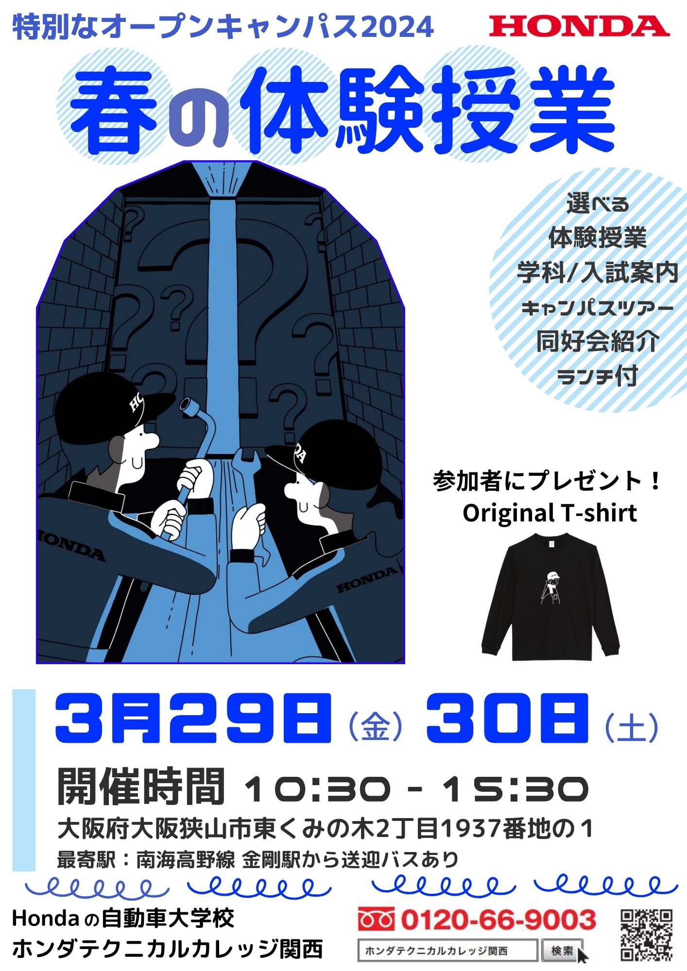 「春の体験授業2024」は両日ともに先着55組限定となります。ご予約はHPの【オープンキャンパス予約】よりお申込みください。