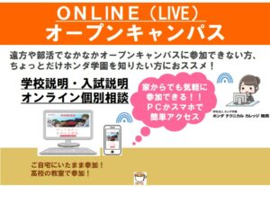 自宅にいながら、ご自身のPCもしくはスマホで、ホンダ学園の学校説明や入試説明が聞けちゃう!