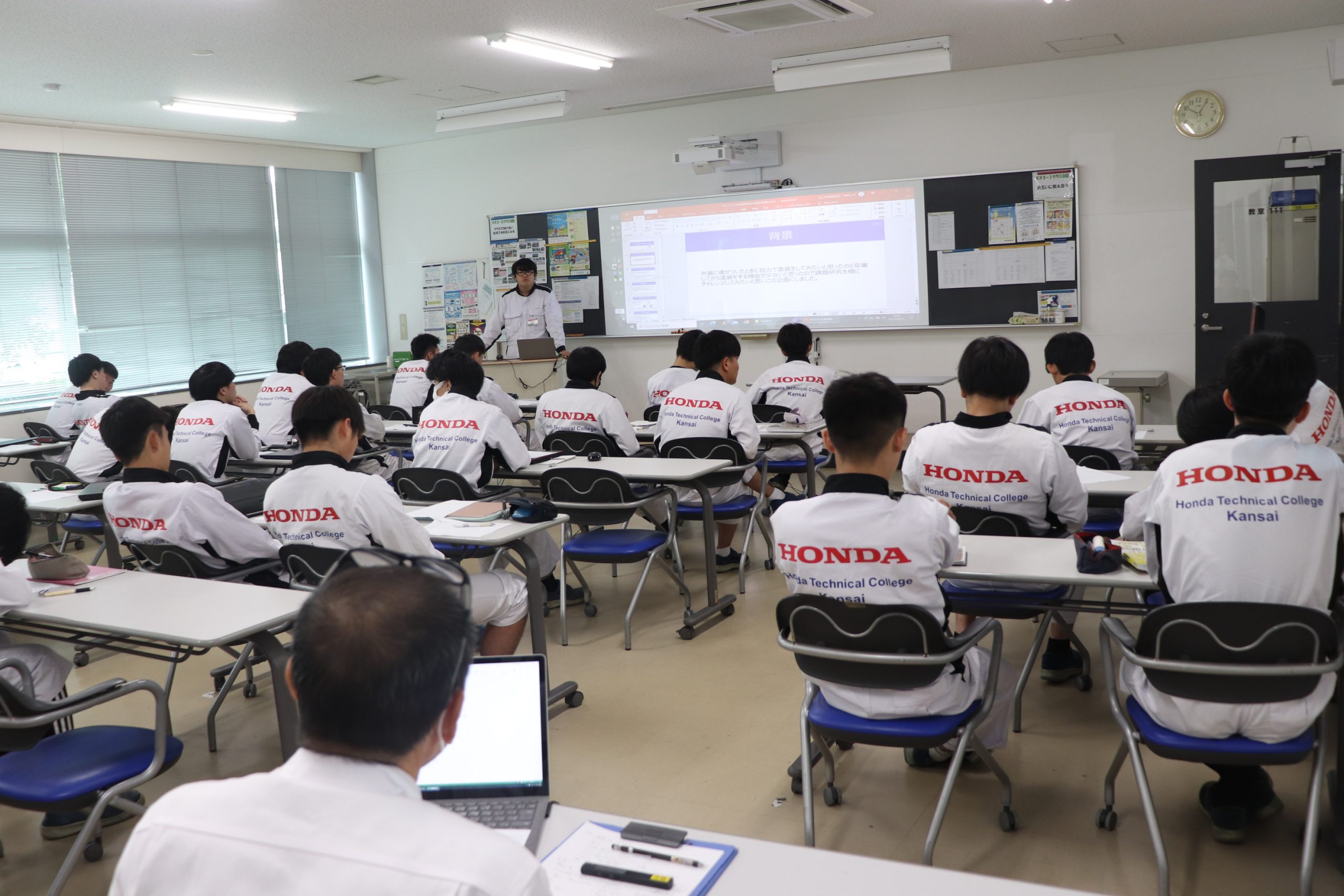 【一級自動車整備士コース3年生】整備課題研究の発表! 2023.09.27 9月20日(水)~22日(金)の3日間で、一級自動車研究開発学科の一級自動車整備士コース3年生が整備課題研究の発表を行いました。各自で設定した整備課題研究について、背景・目的・目標および活動のプロセスや結果を先生やクラスメートに時間内でパワーポイントを使い発表を行いました。発表後は、質疑応答を行い、その後、先生から発表方法や資料の作り方・見せ方等、次に向けてのアドバイスを頂きました。 今回の取り組みで得た気づきや反省及び改善点、是非、次の授業に反映していただきたいと思います。 面白いからやる。