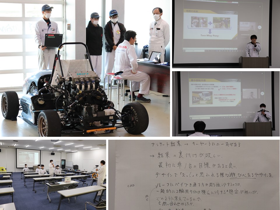 色々なコメントを頂き、どう改善していくかを話し合い、実際の製作に向けて一つになったようです。柔軟な発想で面白い、社会に出ると色々な制約が出てくるので、出来る内に遊び心のある車を思う存分作ってください、とのありがたいお言葉もいただきました。