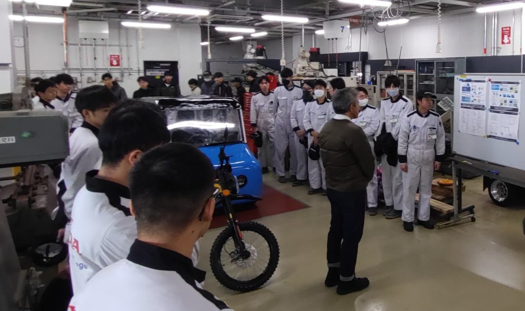 1月26日(金)に本田技術研究所から講師2名をお招きして、自動車研究開発コースの学園生がデザイン講話とクレイ実習※を実施しました。また、学園生からは自分たちが企画・制作している車両についてプレゼンを行い、また、校庭で実際に車両を運転していただきました。