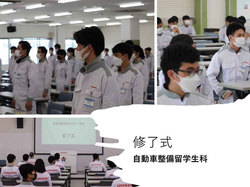 3月11日(金)に2021年度の終業式を講堂とONLINEで実施しました。終業式は、校長先生より一年の振り返り、春休みの過ごし方等のお話をさせて頂き、新任・異動する先生からご挨拶をさせて頂きました。その後、一級自動車研究開発学科2年生の修了式を実施し、在校生代表の三宅さんより、「自動車整備技能登録試験への全員合格に向けて、試験までの残りの日を大切にし、これまで応援してくださった人に結果で恩返しをしよう!」と決意表明がありました。