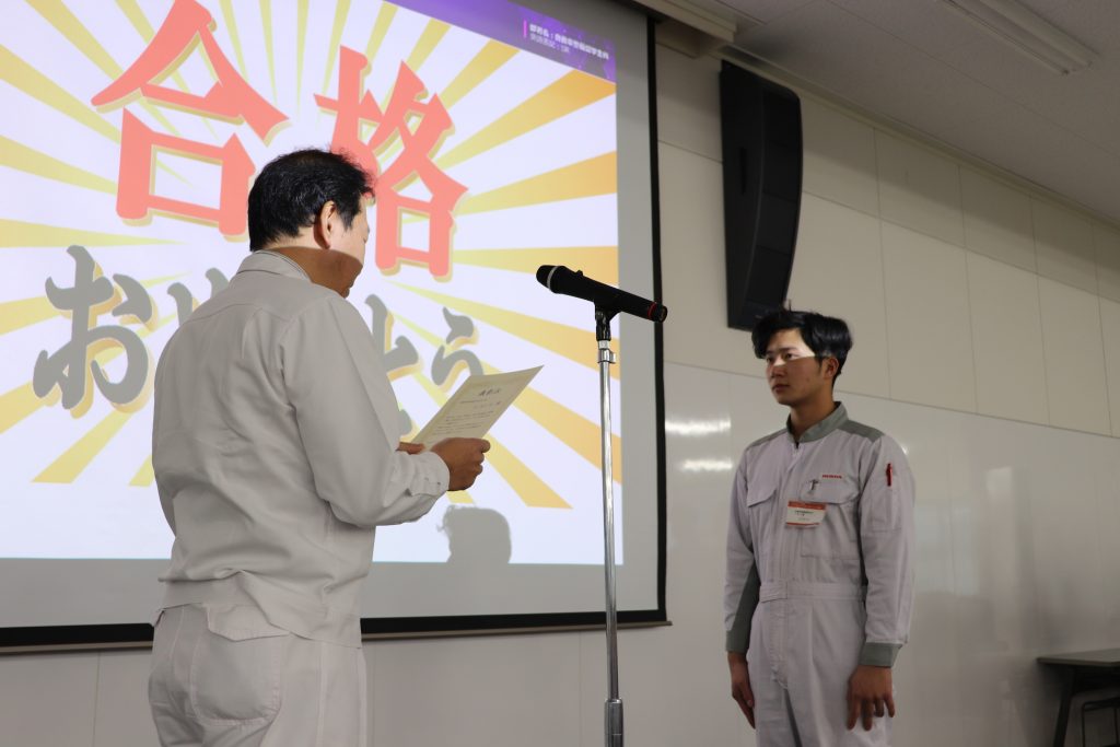 【表彰!】JLPT(日本語能力試験)資格試験合格者 2024.02.08 2月5日(月)に自動車整備留学生科で全体朝礼を実施し、2023年12月に実施したJLPT(日本語能力試験)にチャレンジし、合格した学園生の表彰を行いました。留学生は、ホンダ学園で自動車の知識・技術を身に付けることはもちろんですが、日本で生活し、働くうえで必要となる日本語のスキルも同時に伸ばさなくてはいけません。留学生は、アルバイト先でも、学園卒業後に働く場所となる企業様からも、更なる日本語能力の向上を期待されています。限られた時間の中でしっかり勉強に取り組み、合格という成果を出した留学生の皆さん、本当におめでとうございます。 成功し続けるまで挑戦!