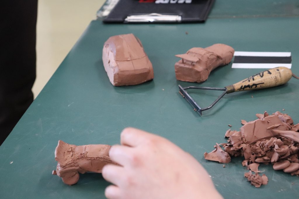午後からは、自動車研究開発コース3年生にクレー(粘土)を使って、クルマのデザインモデル制作まで実施していただき、とても充実した実習になりました。