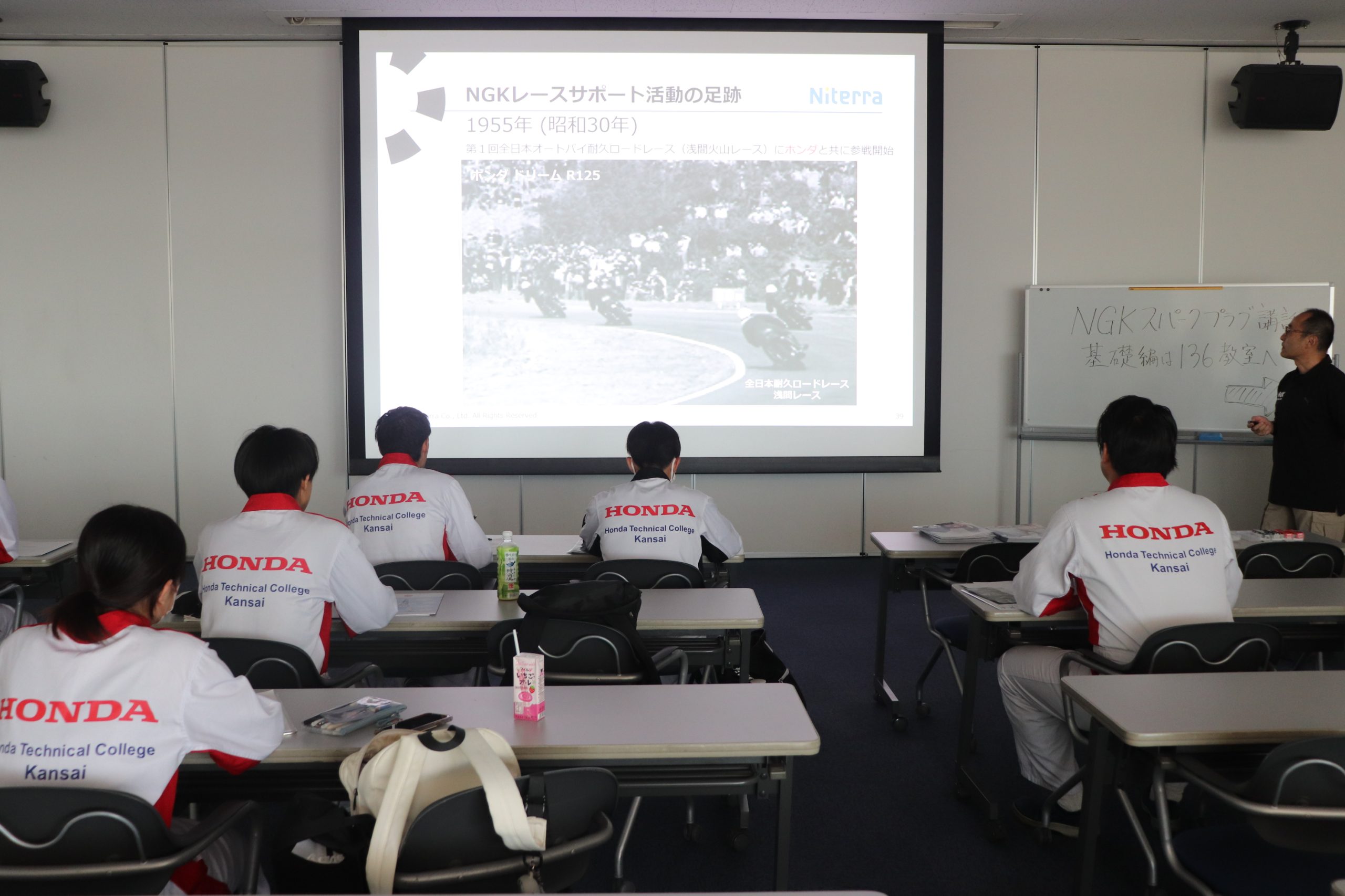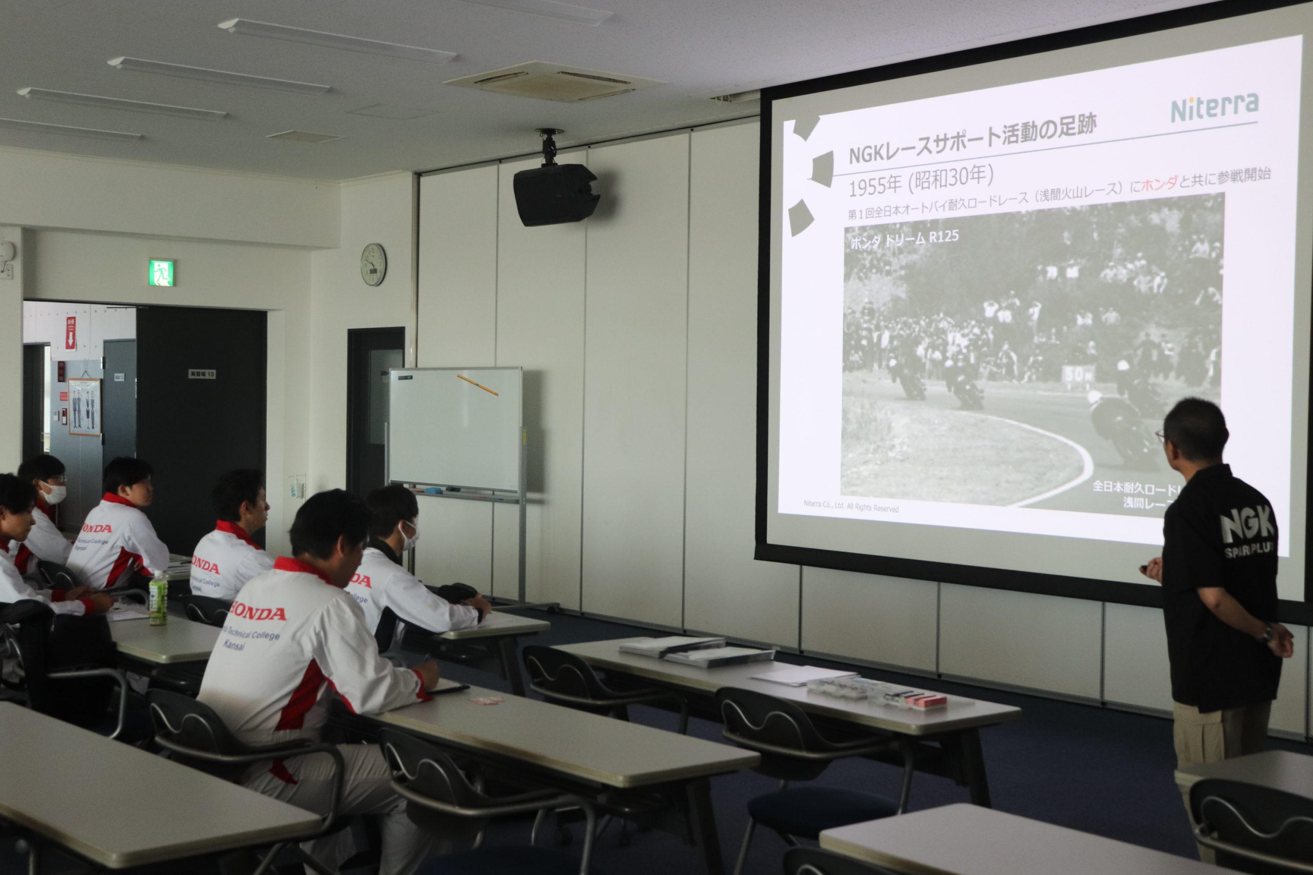 【講話】NGKスパーク プラグ技術講話 2023.08.30 8月29日(火)の放課後に外部から講師をお招きして、「スパークプラグ技術講話」を実施しました。講話は、教科書では学べないスパークプラグの技術的な内容(初心者向けの①プラグ基礎講座、同好会でのレース活動や研究開発の勉強をしている学生向け➁レース特別講座の2本)ということで、放課後の開催にも関わらず、熱心な学生が参加し、聴講をしていました。 この度は、講話にご協力いただきました日本特殊陶業株式会社様、ありがとうございました。