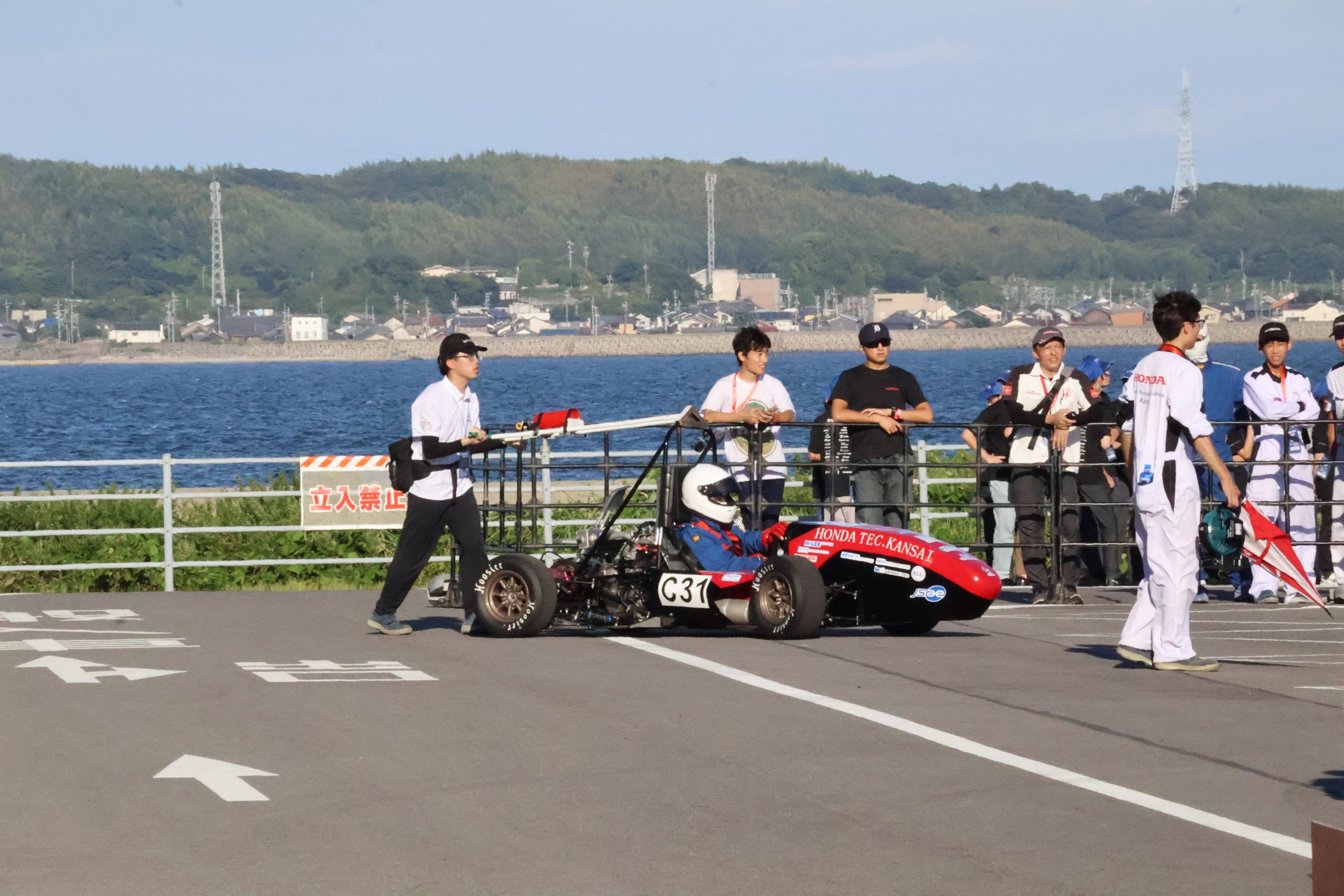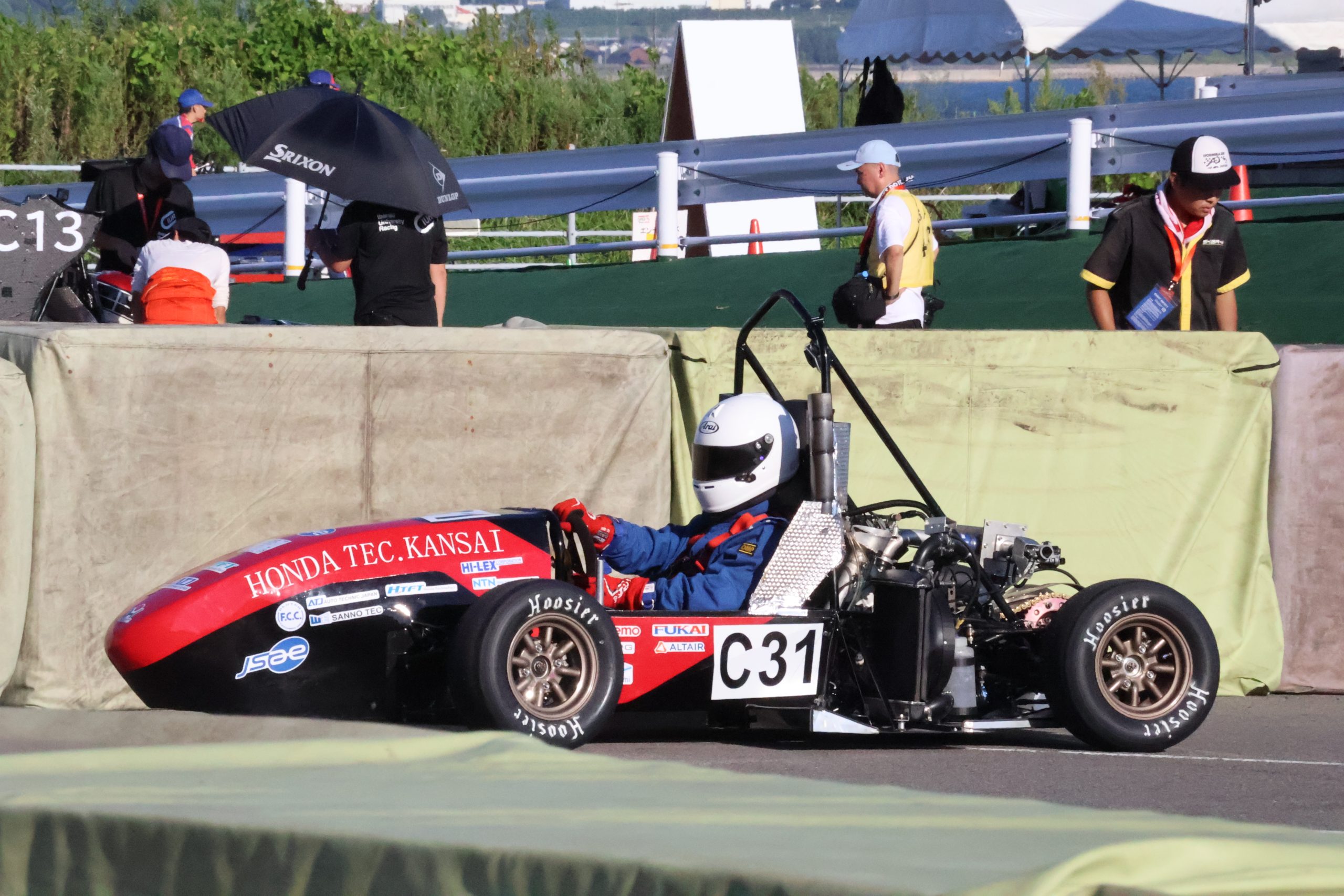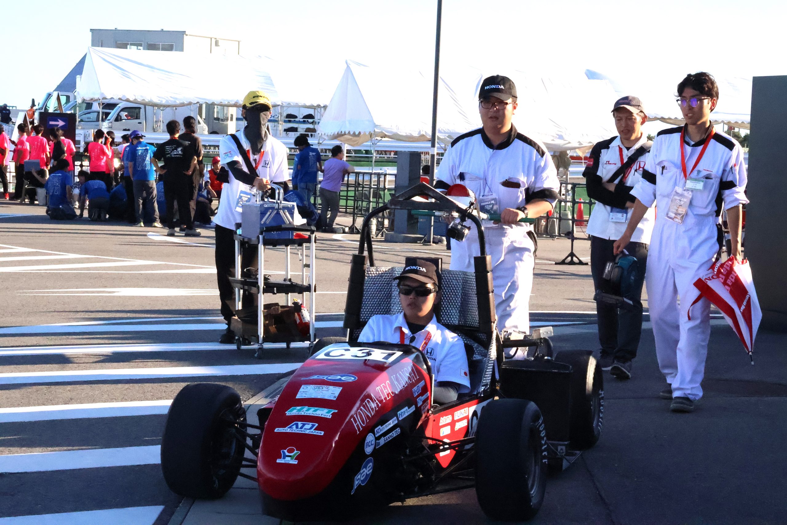 全日本学生フォーミュラ※1の日本大会の車検2日目です。昨日、通らなかった静的車検は車検2日目の朝一で合格し、その後行われた動的確認(チルトテスト・騒音テスト・ブレーキテスト)はいずれも一発合格で午前中には終了しました。午後は、プラクティスエリアで出場予定のチーム・ドライバー全員による練習走行を行いました。若干のトラブル(ブレーキランプのLED切れ)はありましたが、すぐに交換を行い問題なく走行ができました。翌日は、いよいよ動的審査になります。引き続き、応援よろしくお願いします。