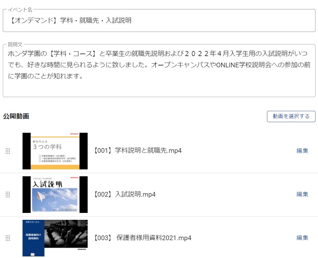 いつでも、どこでも、何度でも、自分の好きな時間にホンダテクニカルカレッジ関西の説明動画が見れる【オンデマンド配信】に「保護者様向け説明」を追加致しました。
