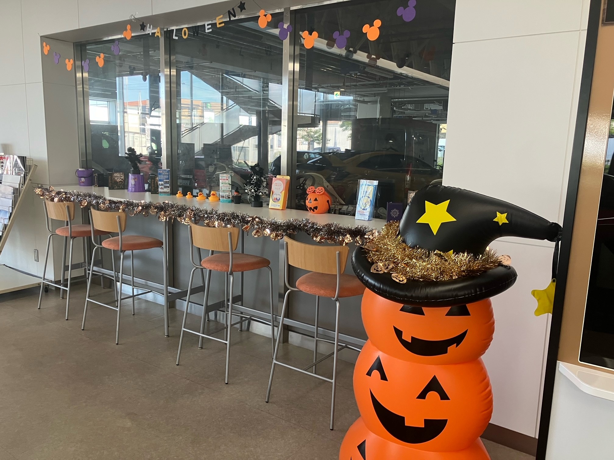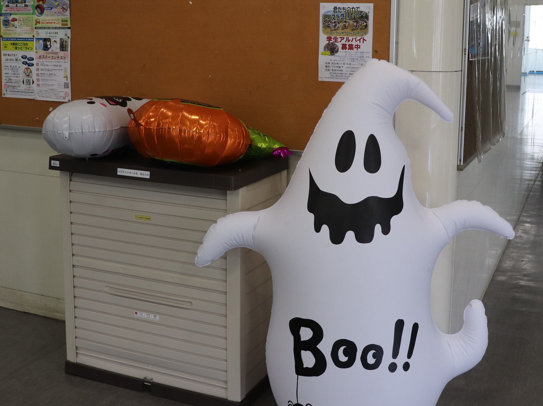 ガーデニング同好会の学園生と教職員で、受付付近や休憩場所のスペースをハロウィーン仕様の飾りつけをしてくれました。季節季節にあわせた装飾をしてくれるので、学園内でも、その季節の雰囲気を感じることができます。(^^♪